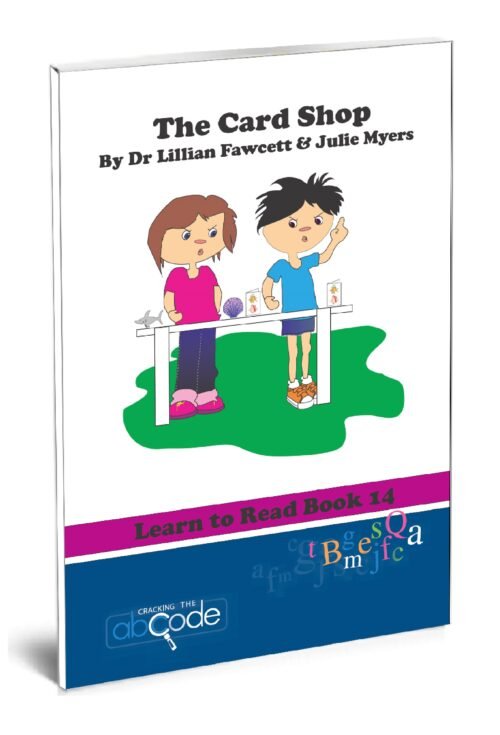 The Card Shop is the 14th book in the Cracking the ABC Code Learn to Read series. It uses the same 20 key words introduced in Book 13 multiple times in different sentence structures throughout the book, while continuing to use the 120 words introduced in Books 1 to 12. In addition, it uses decodable content words based on the ‘ar’ digraph.